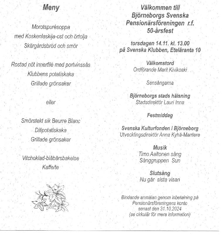 Björneborgs Svenska Pensionärsförening 45 år 14.11.2019